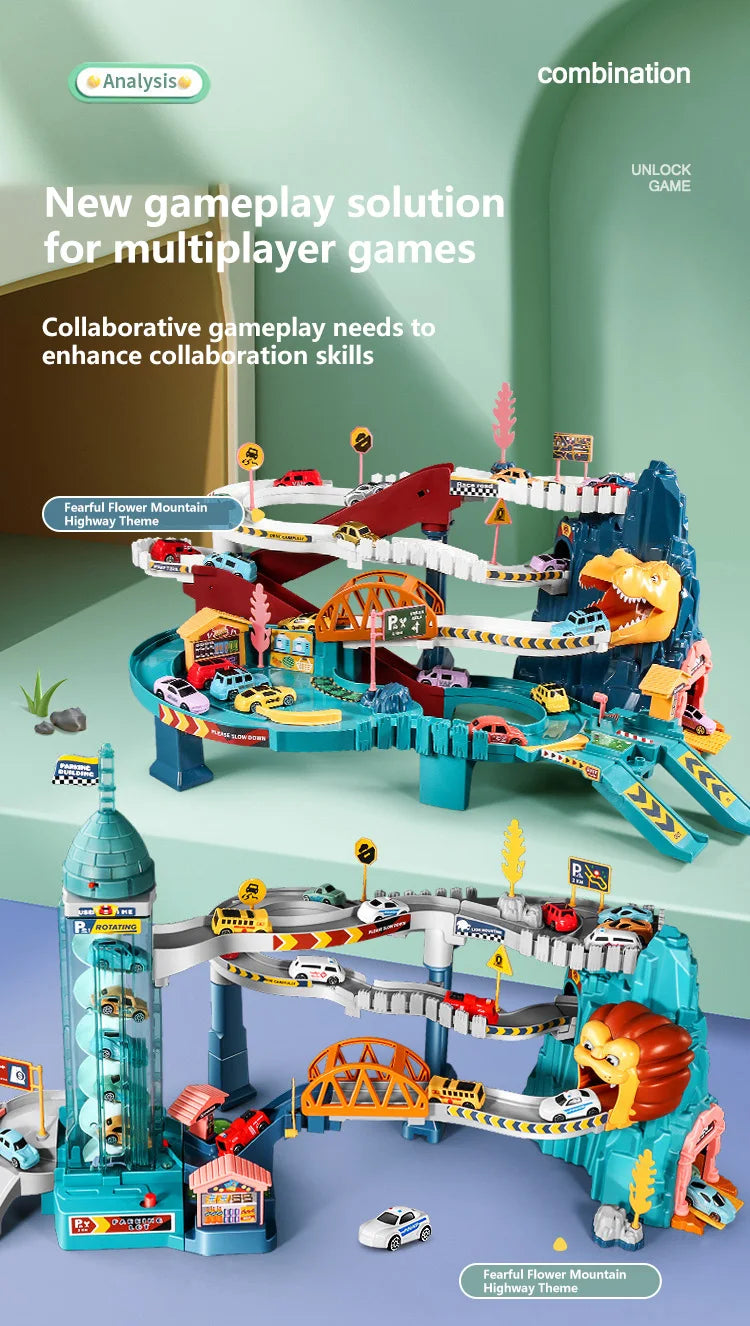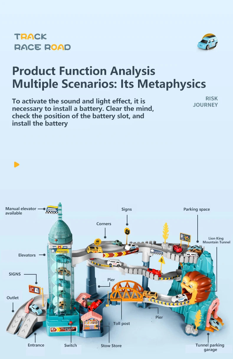 KBDFA Lion Theme Car Track für Kinder, Druckguss, Urlaubsgeschenke, Geburtstag, Hot Wheels, pädagogisches Rennspielzeug für Kinder, Rennwagen