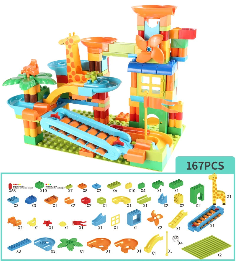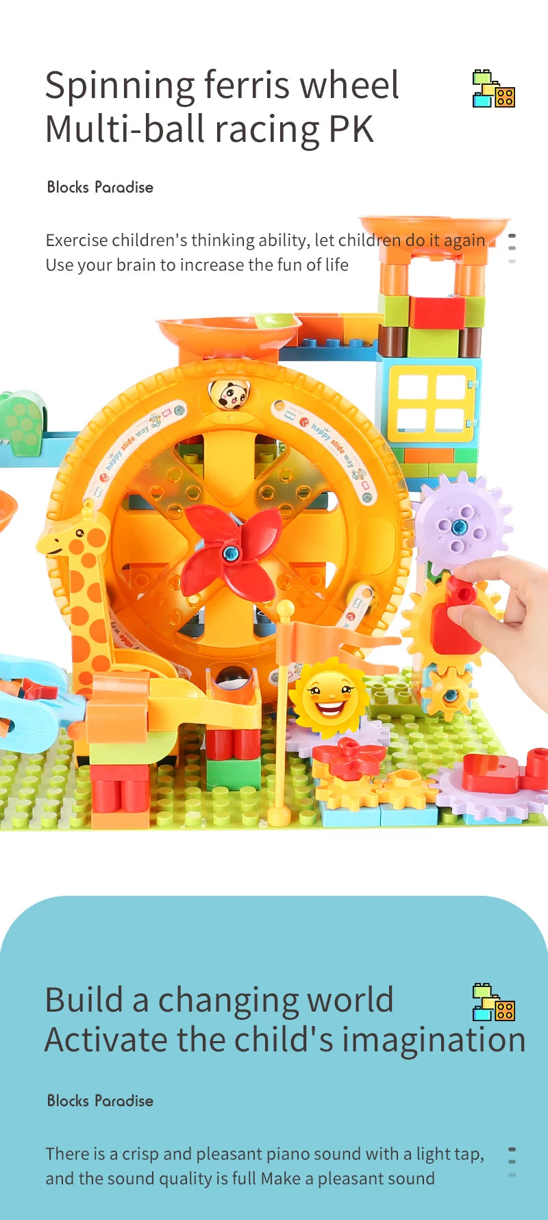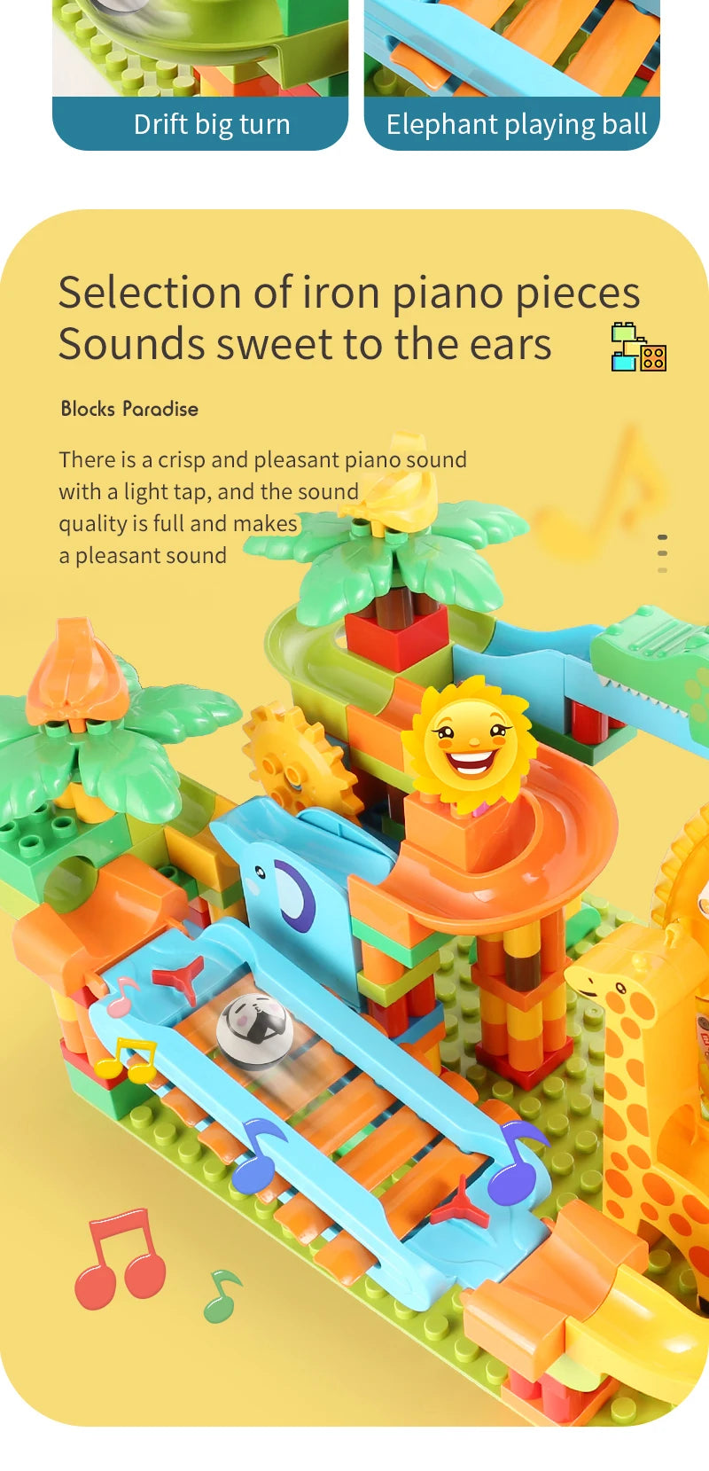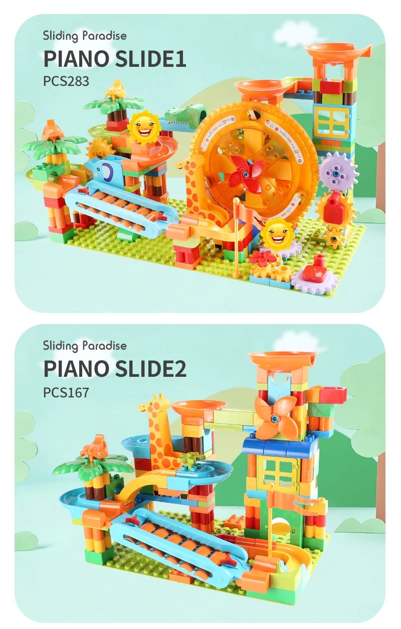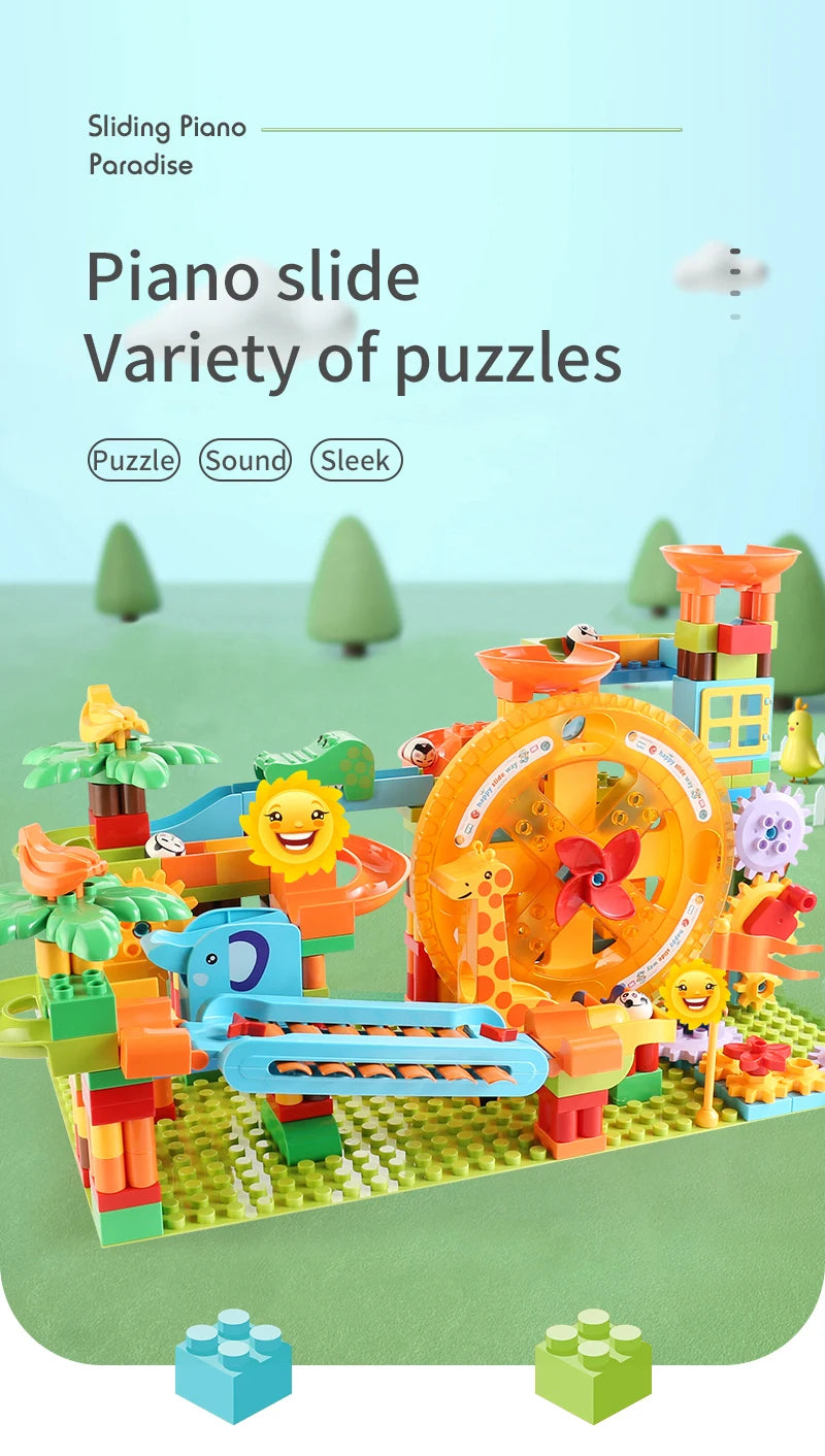 Neueste Große Größe Plattenspieler Marmor Rennen Run Bausteine Kreative Klavier DIY Blöcke Kunststoff Trichter Rutsche DIY Montage Ziegel