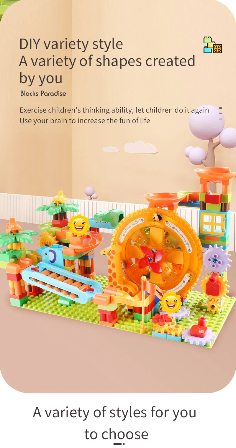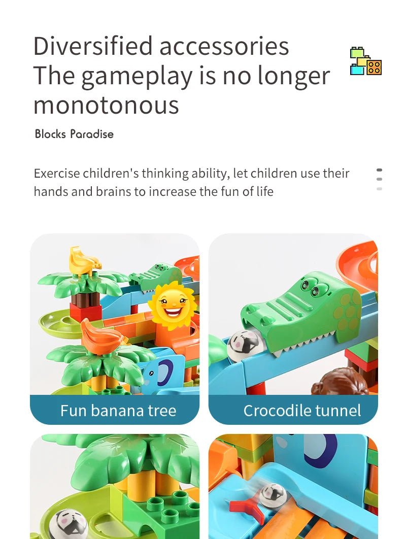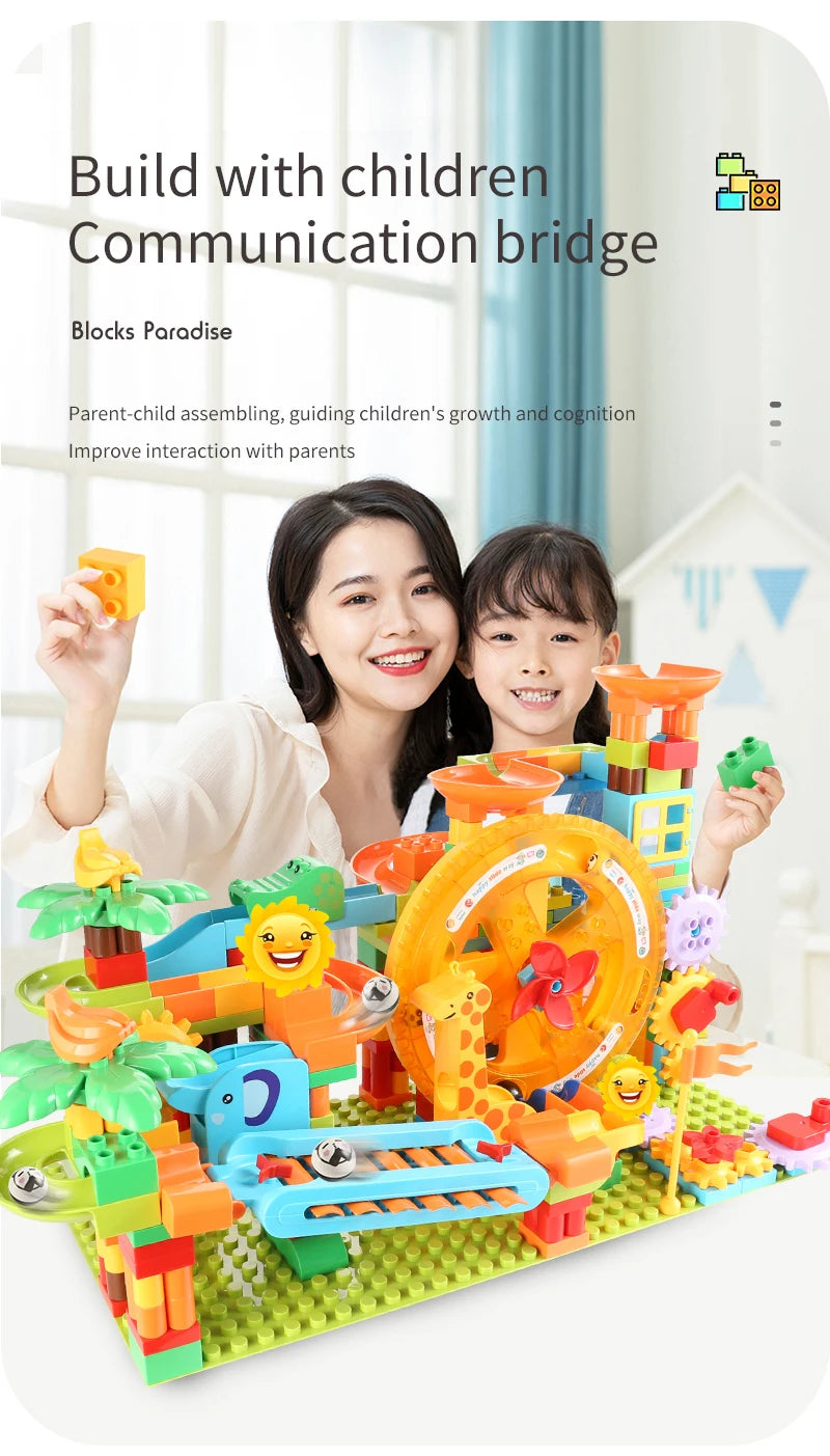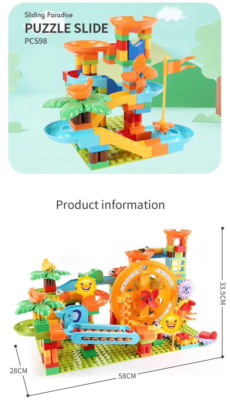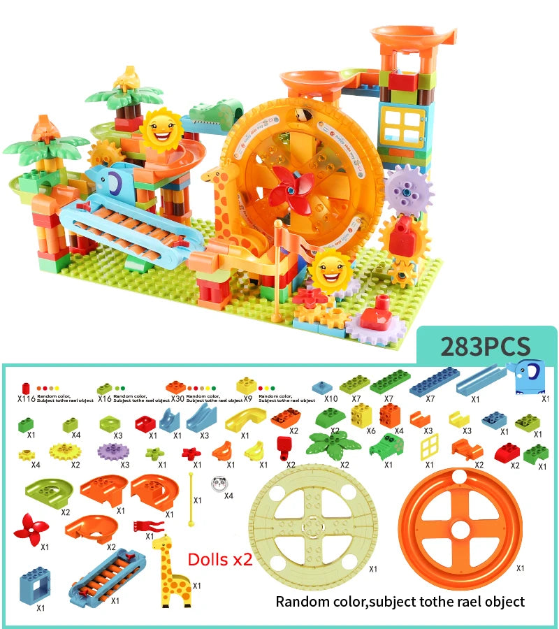 Neueste Große Größe Plattenspieler Marmor Rennen Run Bausteine Kreative Klavier DIY Blöcke Kunststoff Trichter Rutsche DIY Montage Ziegel